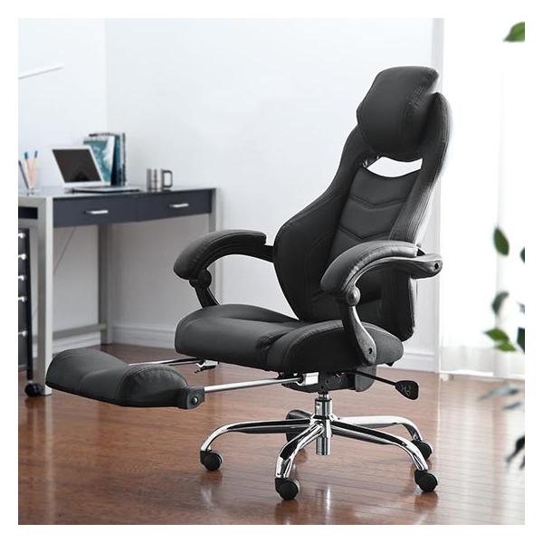 ゲーミングチェア オフィスチェア ハイバック シンプル ビジネスチェア リクライニングチェア ハイバック オットマン付 イス 椅子 送料無au Wowmaワウマ