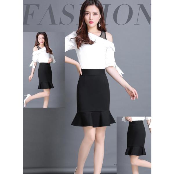 2月中旬入荷予定 レディース 裾フリル デザイン タイト スカート ひざ上丈 2018秋 エレガント オフィス 通勤 女子会