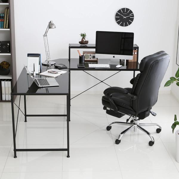 デスク パソコンデスク 机 幅100cm ライティング オフィス ラック L字 スチール製 ガラス天板 鏡面 コーナー Pc 収納棚 おしゃれ ロウヤ Lowya