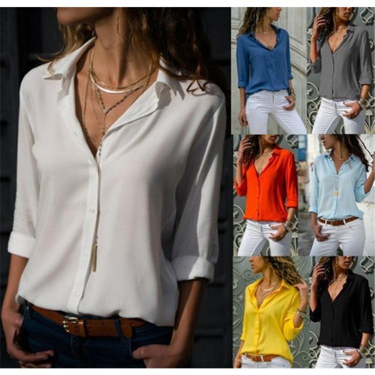 春白ブラウスシャツオフィス夏 Blusas Femininas Roupas 作業服