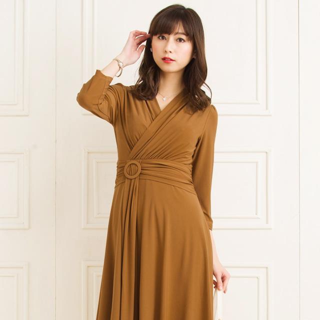 カシュクールワンピース 秋冬 大人コーデ ハイウエスト プリーツ