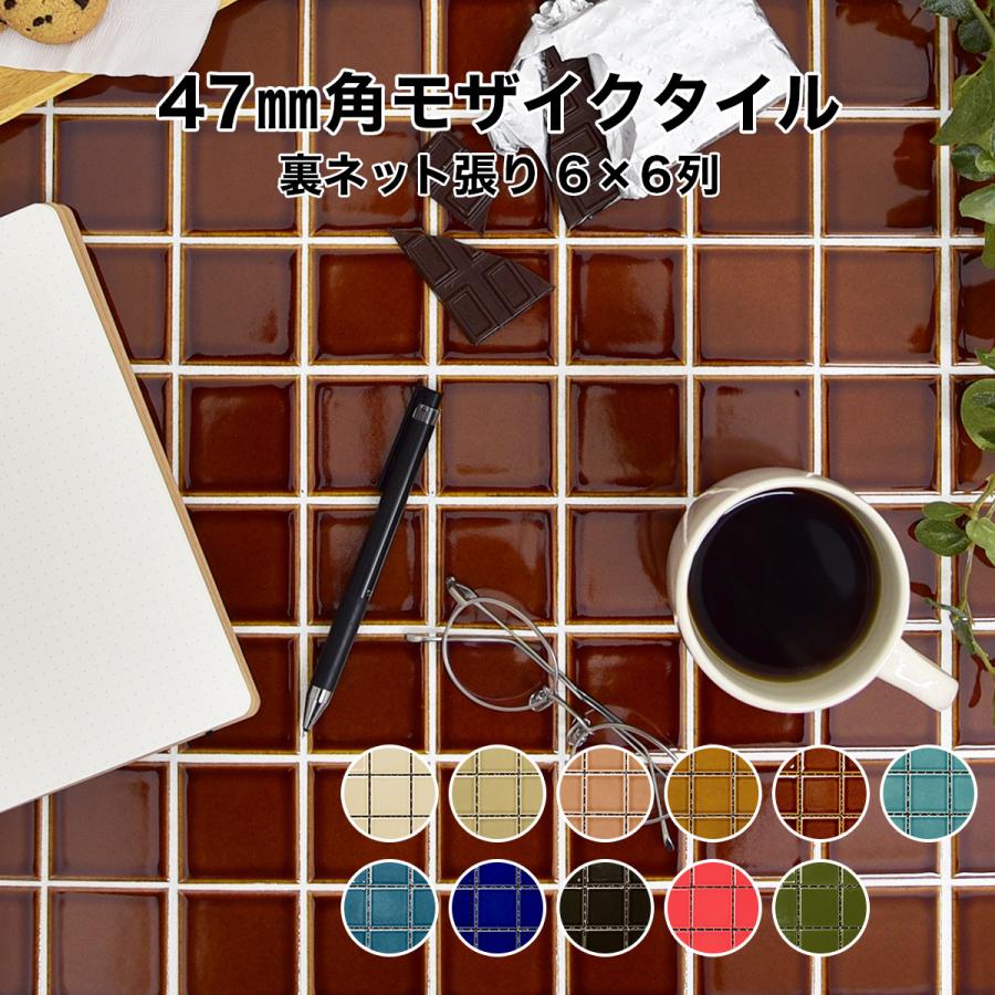 モザイクタイルシート 47mm角 レトロ単色 裏ネット張り 磁器質 施釉 全11色 6列6列 シート張り スーパーホワイト生地を使用 日本製 キッチン 洗面所 テーブル Net Et 47k 051 1タイルショップたまがわ 通販 Yahooショッピング