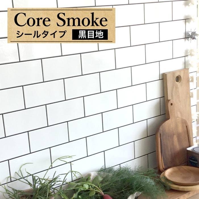 タイルシールキッチンタイル 洗面 シールタイプ Diyタイル サブウェイタイル 壁タイル デザインタイル 玄関タイルシール コアスモーク半マス2枚セット 白黒目地 全色 バラ販売 インテリアショップ セラコア