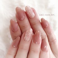 オフィスネイル 透け感あるヌーディーピンク シンプルに大人っ