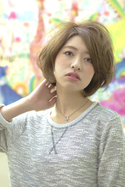 ハイライトショートボブ丸顔20代30代におすすめ外国人風