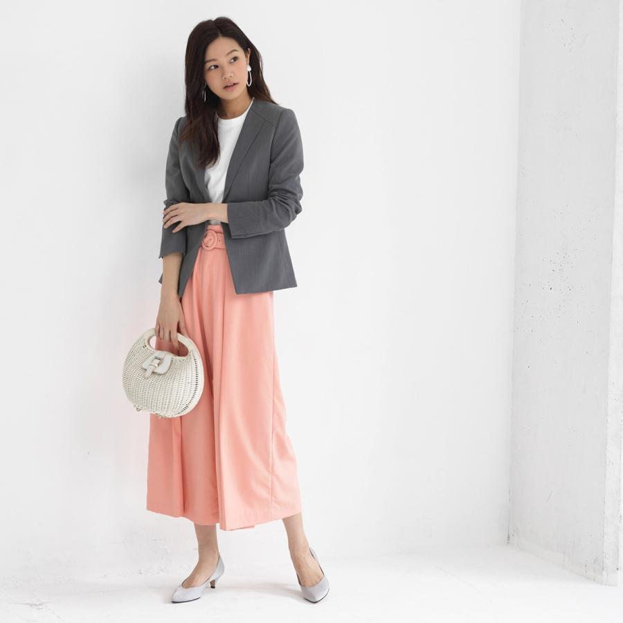 オフィスカジュアル ノーカラージャケット ワイドパンツコーデ