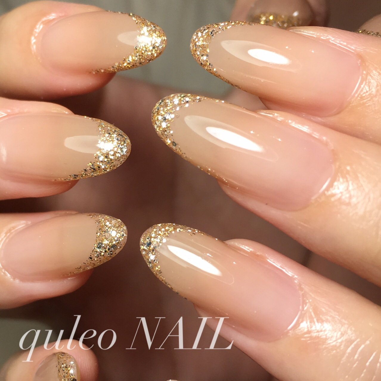 白べっ甲ネイル ビジューネイル ジェルネイル フレンチネイル