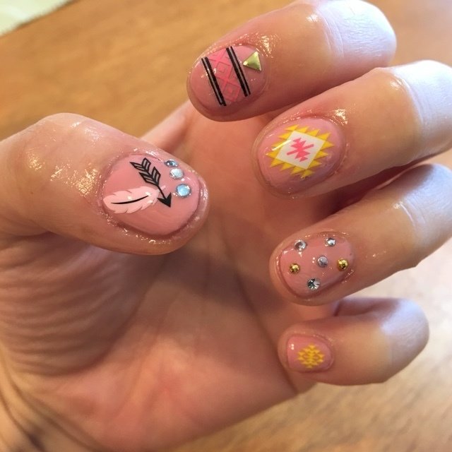 ナチュラルピンク ワンカラー ストーンアート シンプルネイル