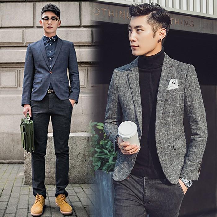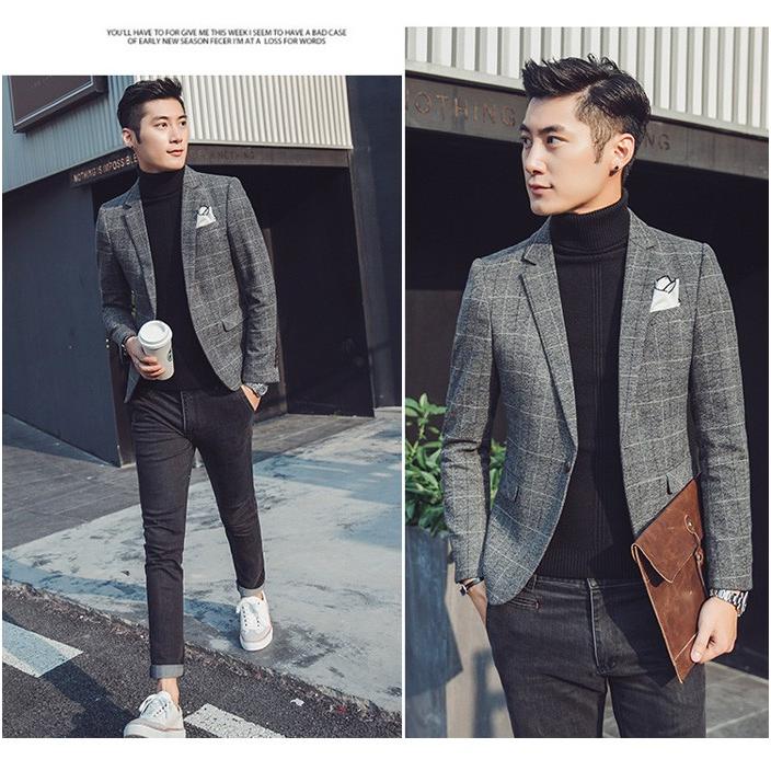 ブレザー男性スリムフィット 2019 春秋メンズチェック柄ブレザー