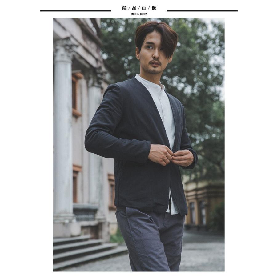 メンズ ジャケット テーラードジャケット コットンシャンブレー 立ち襟ジャケット ビジネスジャケット オフィス 細身 通勤 紳士服ada