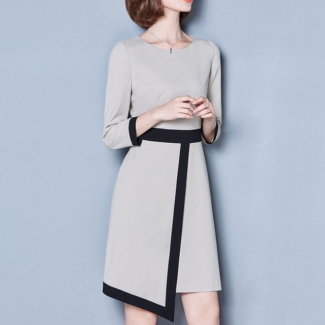ワンピースドレス 2色 アシンメトリー バイカラー 大きいサイズ ラウンドネック 七分袖 フレアスカート エレガント 膝上丈 オフィス パーティー お呼ばれ 秋 春 レディース Fm0449 Hi Na Ta Clothing Store Powered By Base