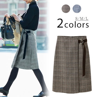 送料無料 チェック柄スカート 秋冬 セレブ キレイ目 オフィス ミドル丈 膝上 スカート ボトムスau Wowmaワウマ