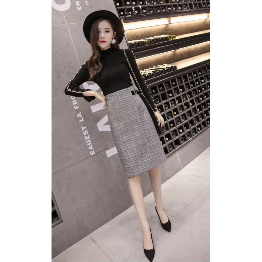 チェック柄 スカート 秋冬 セレブ キレイ目 オフィス ミドル丈 膝上 スカート ボトムス ブラウン プチプラ海外レディースファッション専門店 Aaa Style