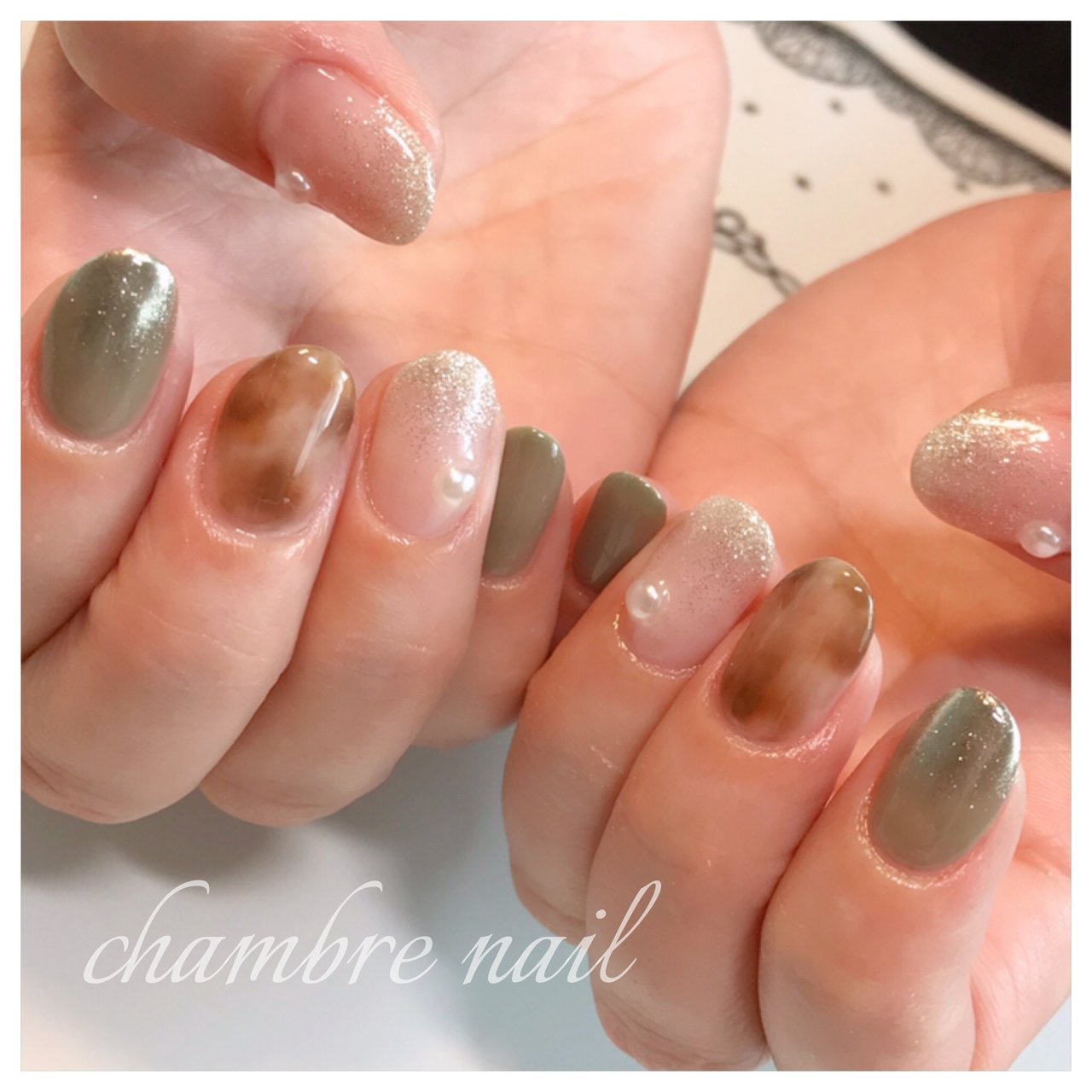 囲みべっ甲ネイル秋冬ネイルべっ甲ネイルシェルストーン