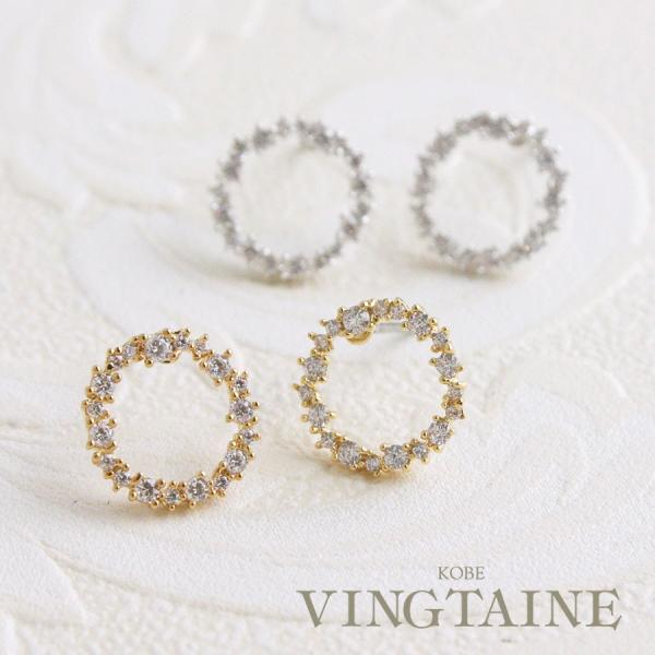 ピアス イヤリング ビジュー 小振り 痛くない 小ぶり リング モチーフ カジュアル 上品 オフィス パーティ アクセサリー ジュエリー ゴールド シルバー ピンクゴールド プレゼント ギフト ノンホールピアス