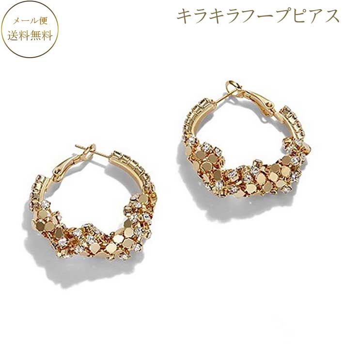 ピアス 大ぶり ピアス 大きめ ピアス オフィス ピアス キラキラゴールドのフープピアス 大ぶりピアス上品 清楚 大人 カジュアル オフィス 女性 結婚式 お呼ばれ アクセサリー敦華 Atsuka