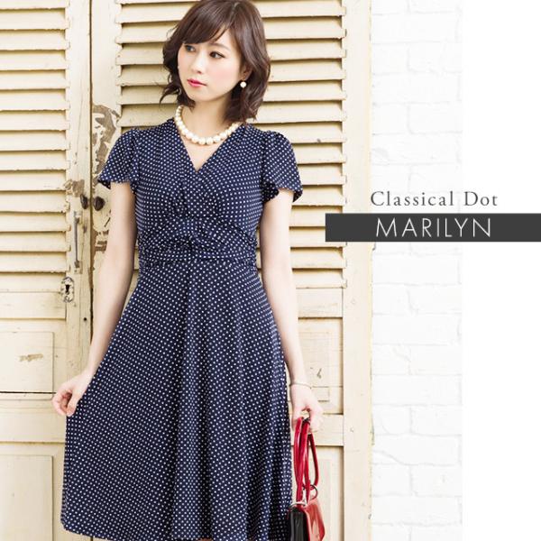 2019夏不二子ワンピランダムドット プルシャンブルー 30代 40代 大人 上品 エレガント 水玉 半袖 膝丈 着やせ ワンピース タイト オフィス ネイビードット 夏ワンピ トールサイズ レディース 夏 ジャージーワンピース Fujiko フジコ美人ワンピ専門店mimi Grant