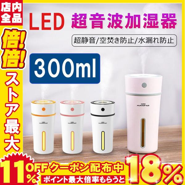 加湿器 卓上 オフィス 300ml 水溶性アロマok 大容量 連続加湿 約10時間 Ledランプ 気化式 空焚き防止 超音波式 おしゃれ Usb スチーム式 静音 小型 ナチュラル 車載 車用 ミニ加