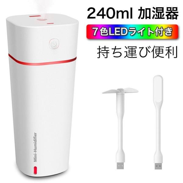 加湿器 卓上 Usb扇風機 オフィス スチーム式 Ledライト 240ml 大