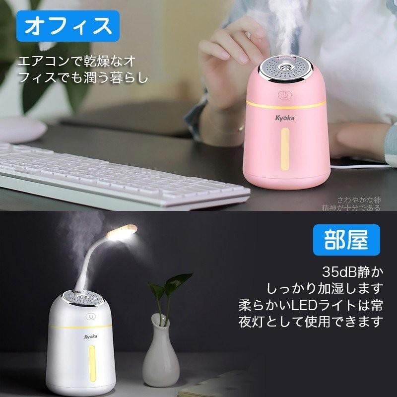 加湿器 卓上 空焚き防止 超音波式 アロマディフューザー オフィス ライト付き 大容量 Usb スチーム式 静音 小型 ナチュラル おしゃれ 300ml ピンク