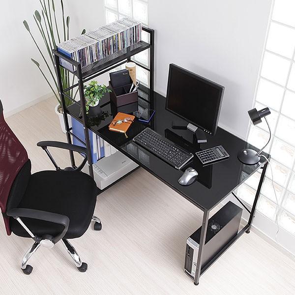 デスク パソコンデスク 机 幅120cm ライティング オフィス 収納棚 ラック 収納付き Pc ワーク スチール製 ガラス天板 鏡面 コンパクト おしゃれ