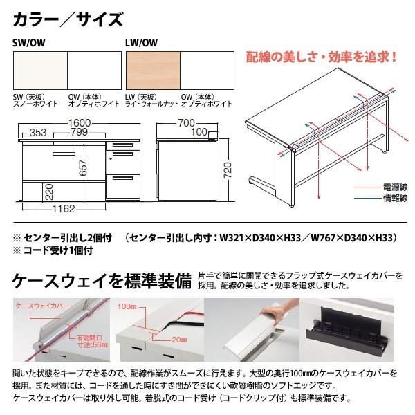デスク オフィス 引き出し 平机 メティオ 配線機能付き 幅1000奥行700高さ720mm