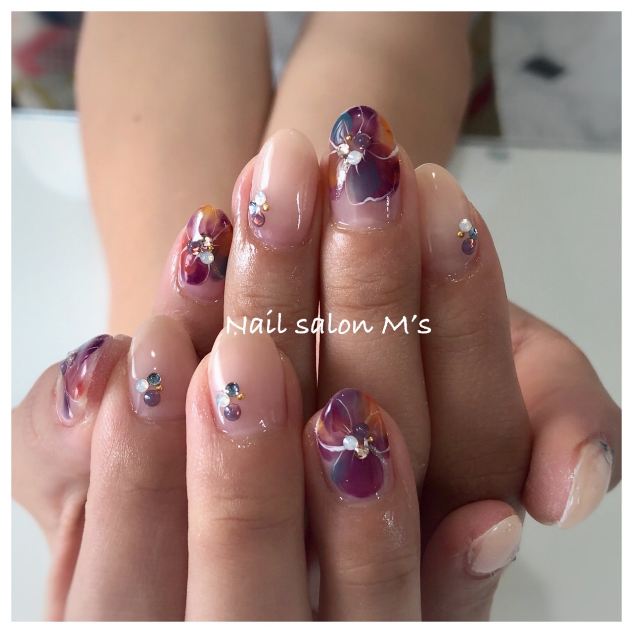 大人カジュアルnail 人気のパープルカラーにビッグシェル ご