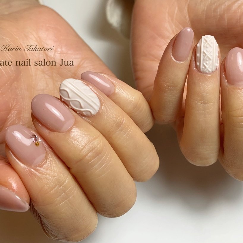 ニットネイル グレージュ秋冬ブラウンホワイトくすみカラースモーキーカラー