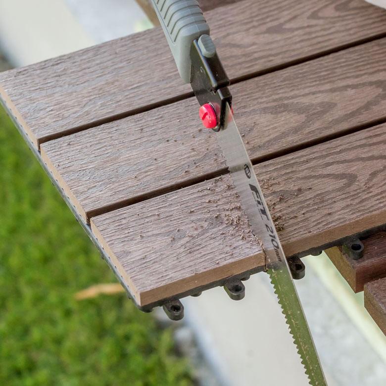 テラスをおしゃれに彩る木調のタイルデッキ かんたん庭レシピ