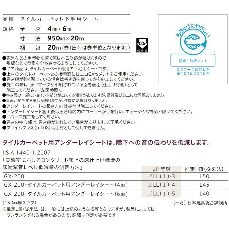 東リ タイルカーペットgx下地用シート消音シートアンダーレイシート Tcpus 66mm厚 950mm20m巻 ホテル客室や通路に