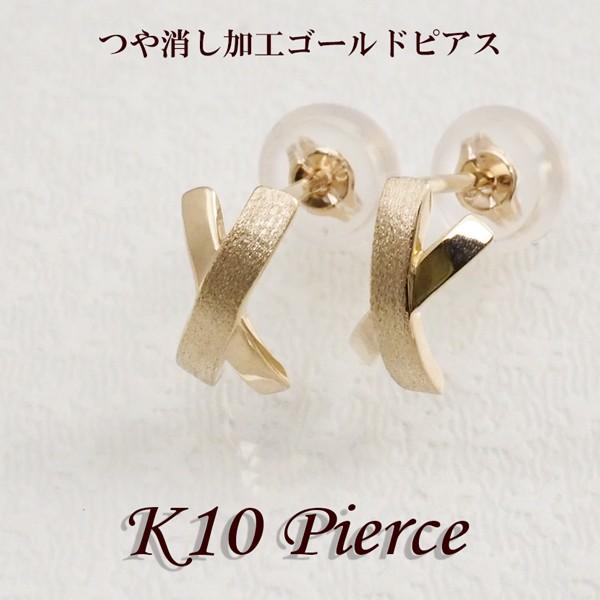ピアス K10 10金 シンプル クロス レディース オフィス プレゼント