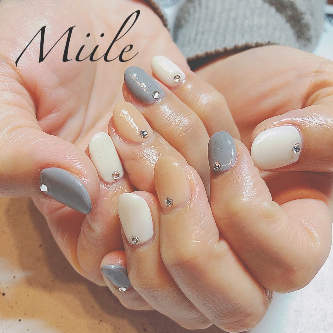 冬ネイルはホワイトで決まりニットからのぞかせる