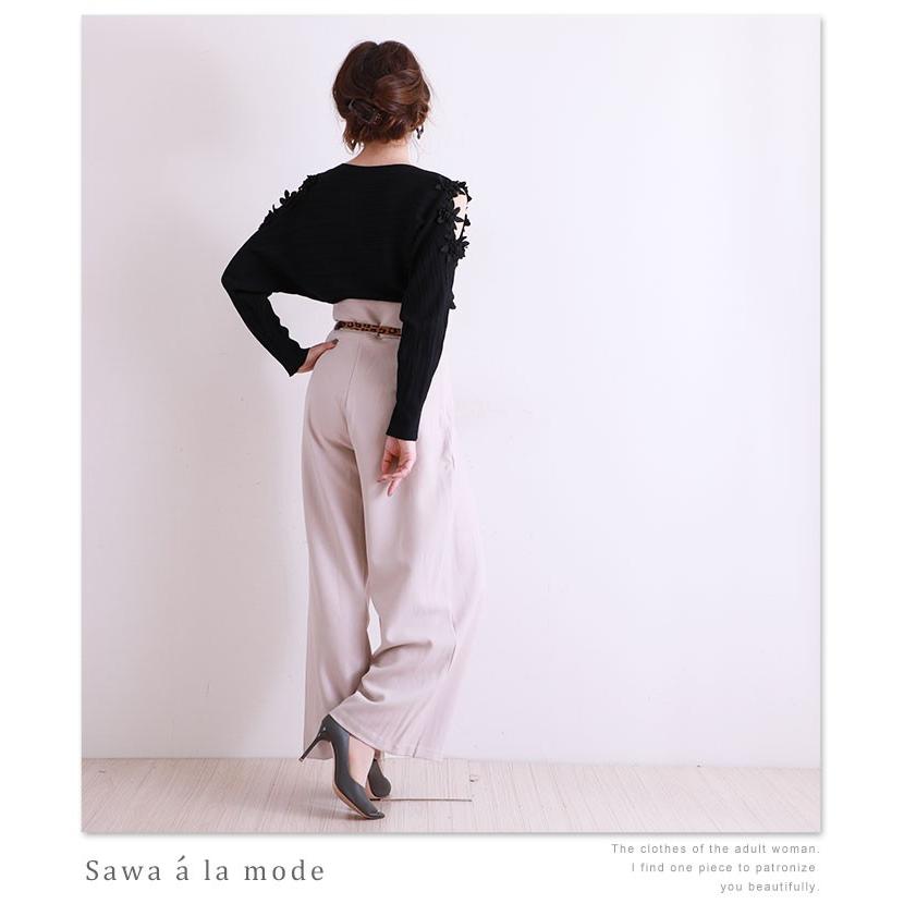ワイドパンツニットセットアップ フレア お呼ばれ ルームウェア