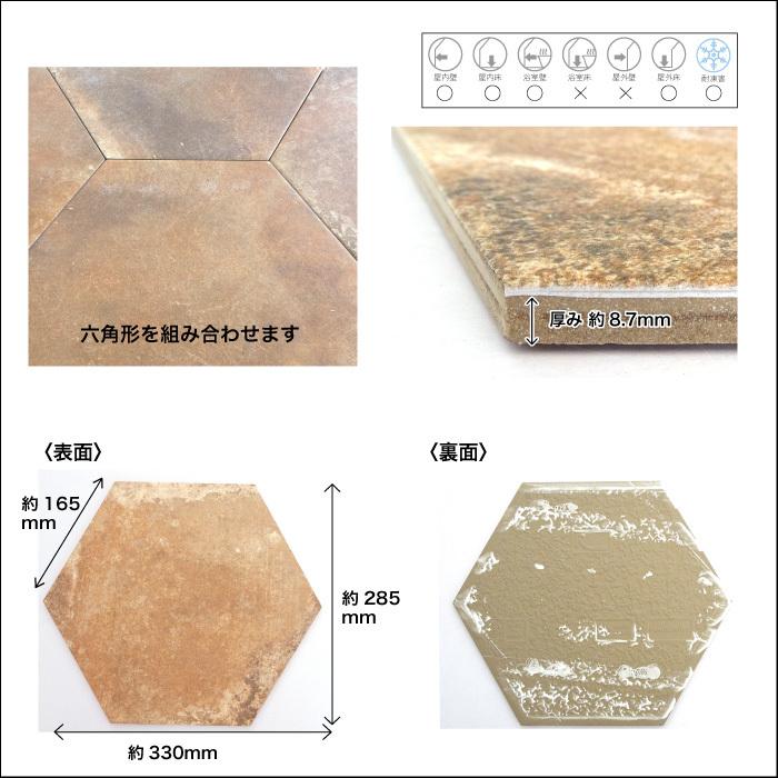 床 タイル ヘキサゴン 六角形 モダンな床タイル 玄関タイル テラコッタ調タイルで仕上げようテラヘキサ 全色 ケース14枚m2販売au Wowma