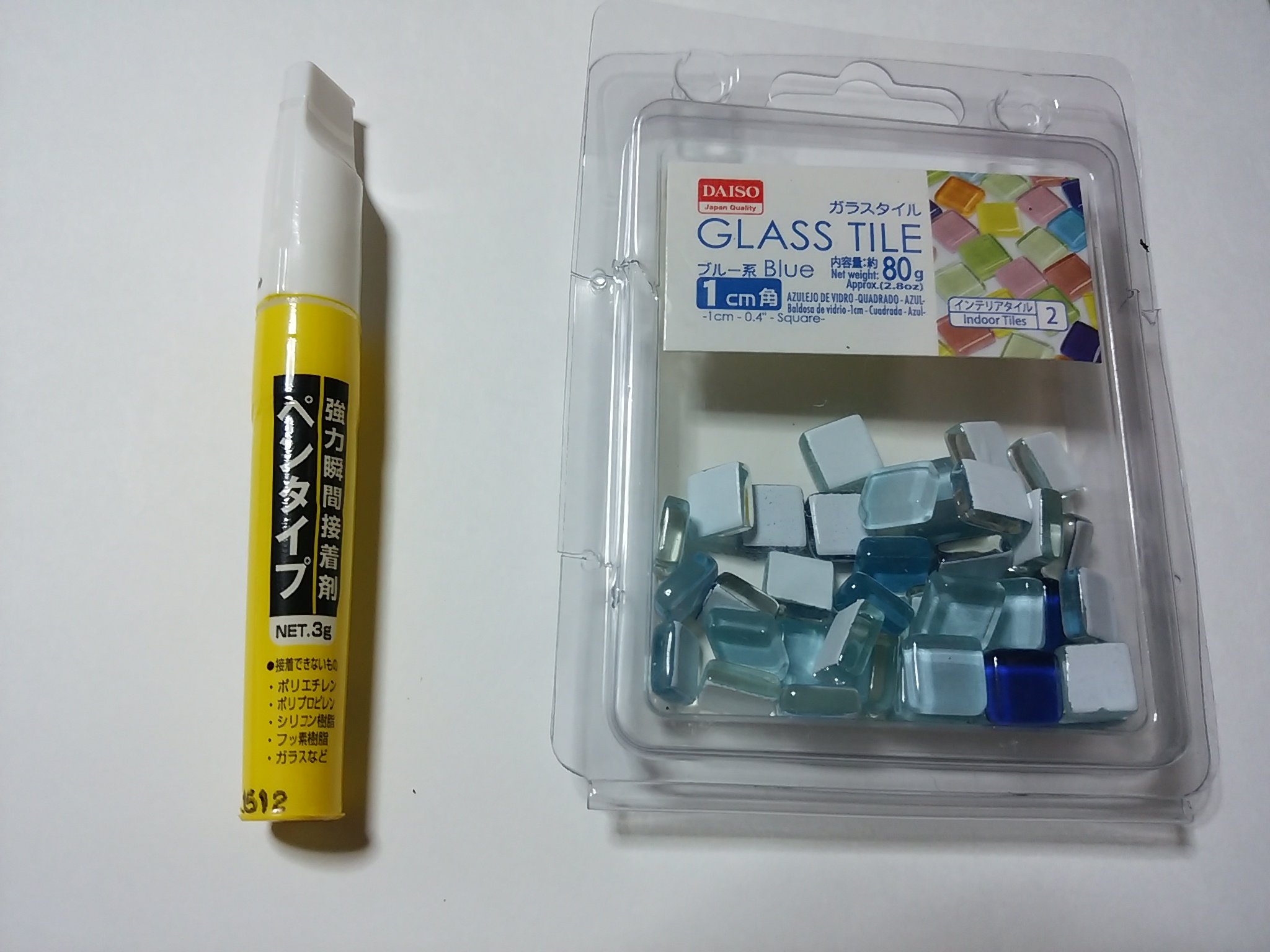 接着剤で貼るだけ100均のガラスタイルでアイテムを涼やかに彩