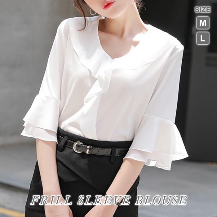 ブラウス レディース フリルシャツ 半袖 五分袖 ブラウスシャツ