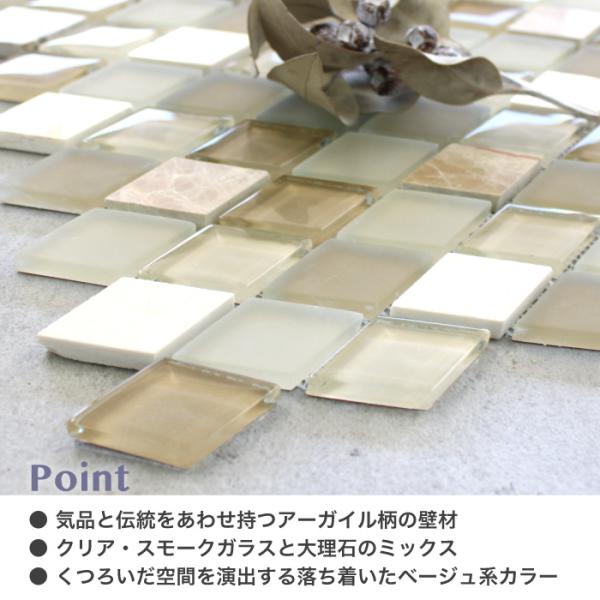 ガラスと天然石のモザイクタイル キッチン浴室壁用マルメゾン58 シート販売