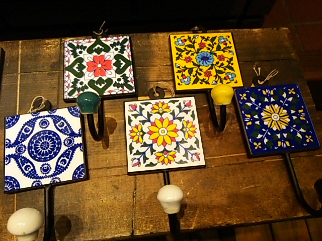 インド製 エキゾチックなタイル貼りフック 雑貨屋 婆娑羅