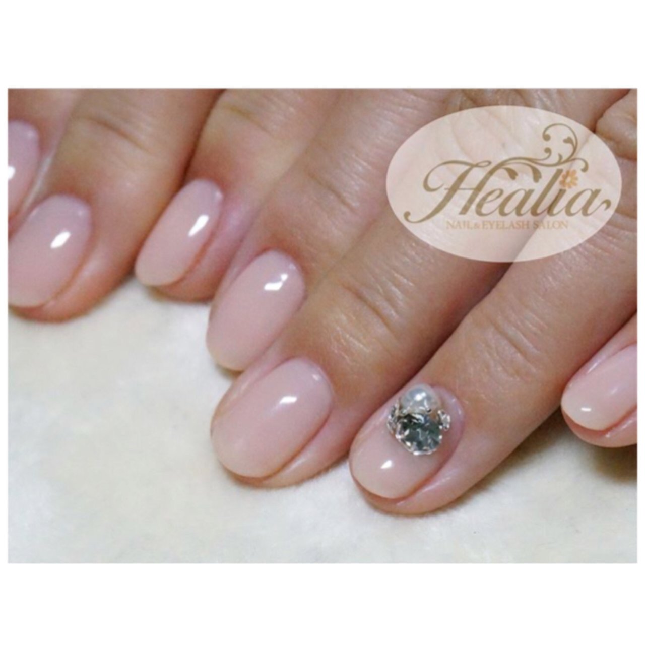 宝石ネイル デザインピンクベージュカラーで春らしく