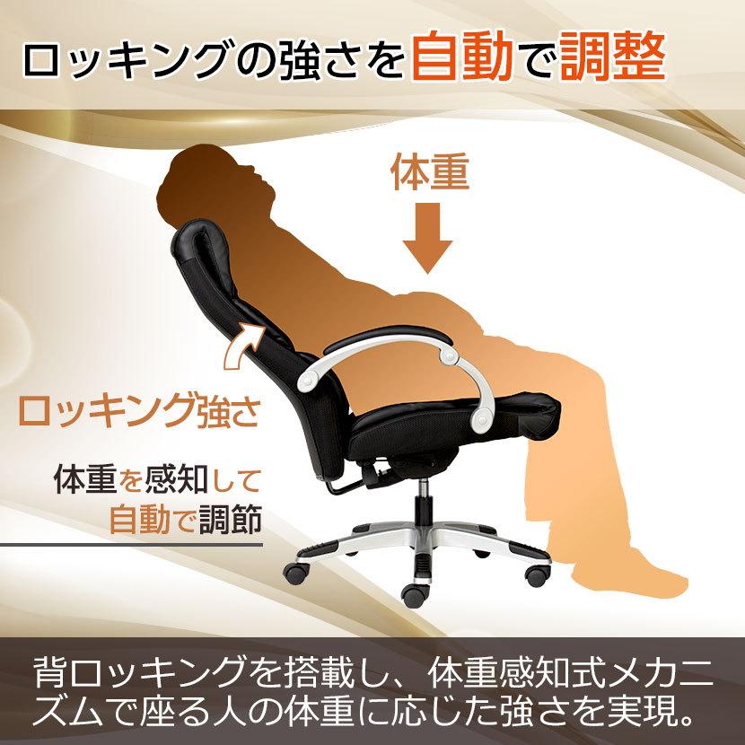 座るだけで体重に合わせてリクライニングがフィット 内田洋行