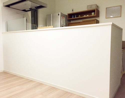 対面キッチンカウンターの壁に初めての漆喰塗りdiy まめメモ