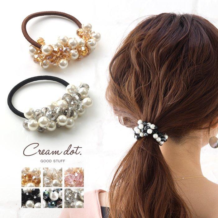 ヘアゴム Cream Dot ヘアゴム パール ビーズ 多面カット