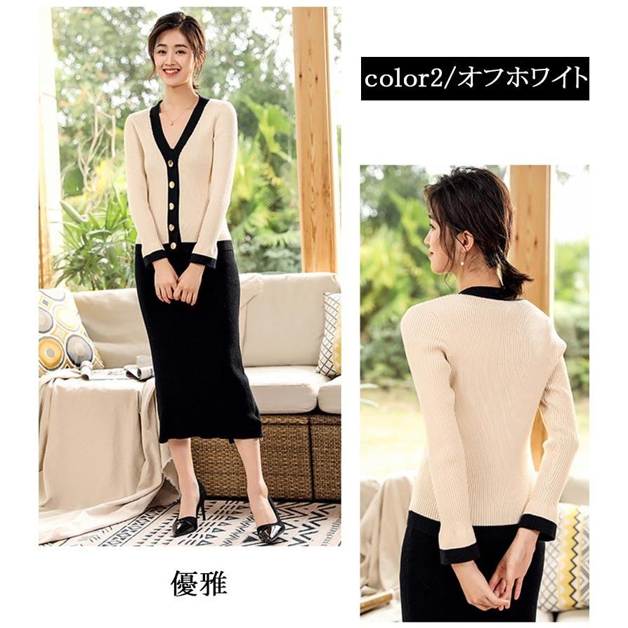 ニット トップス レディース バイカラー Vネック ポケット レディーストップス 通勤 Ol オフィス カジュアル フォーマル 白 黒 イエロー ブラウス カーディガン 春 秋 冬 きれいめ リブsaison De Papillon
