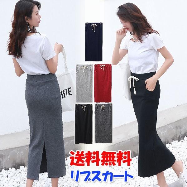 リブ ペンシルスカート レディース 美脚 タイトスカート 通勤 オフィス ニット スカート ロング丈 マキシ丈 ニットスカート
