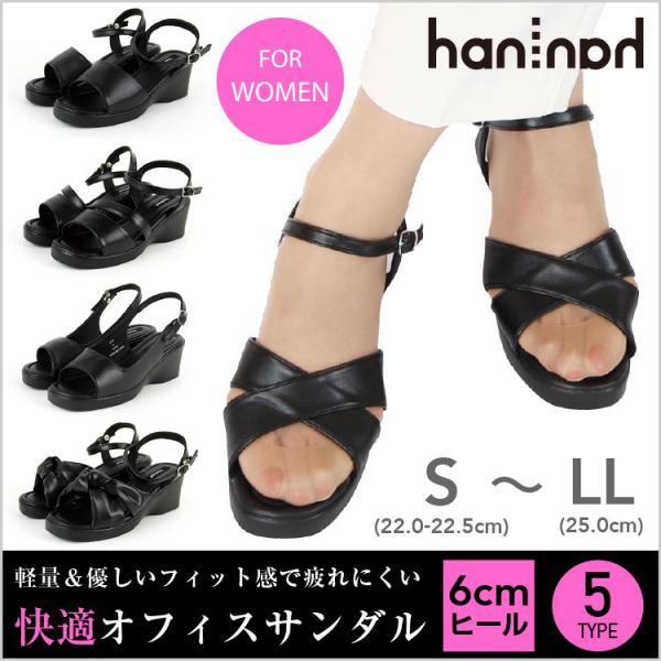 コンフォート オフィス サンダル 5種類から選べる レディース 黒 疲れにくい 厚底 220 250cm ナースシューズ 6cm ヒール おしゃれ Hannah ハンナ 美脚 快適