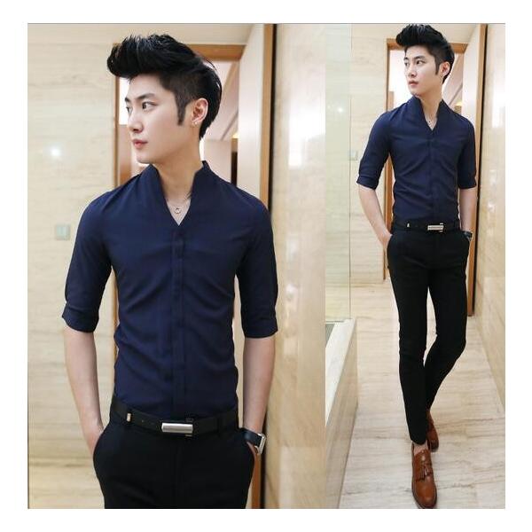 2017真新しい夏メンズ半袖青い縞模様のシャツビジネスカジュアル