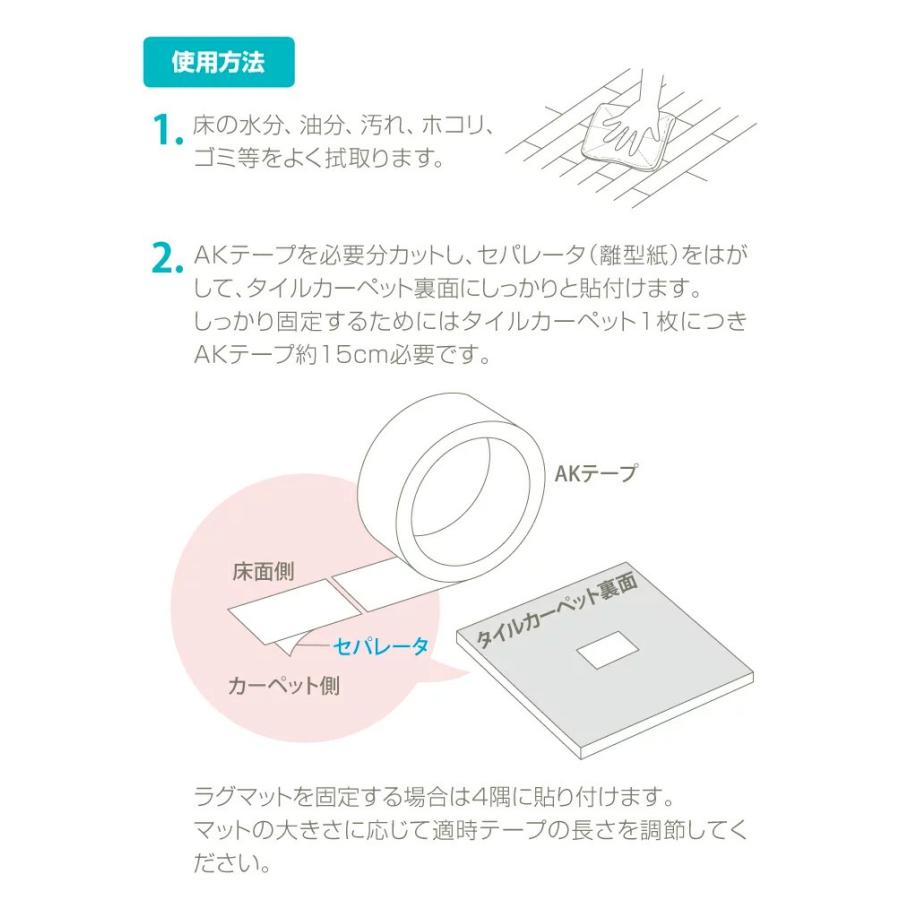 期間限定 19日20時 26日1時59分までエントリーでポイント5倍送料無料akテープ滑り止め吸着テープラグ マット タイルカーペット 固定用テープ Ak Tape 東リ カーペット しっかり ずれない 吸着 貼ってはがせる テープ 幅 4cm3m 巻1個入