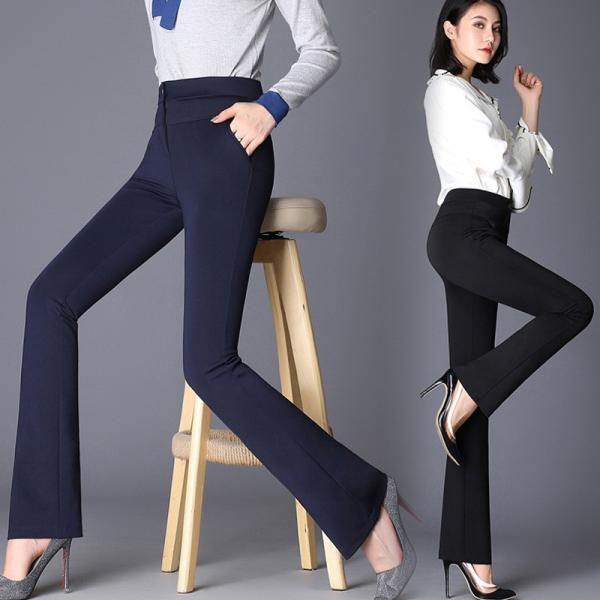 ブーツカットスラックスパンツ 無地 美脚効果 オフィス 通勤