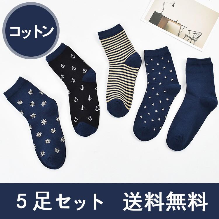 靴下 メンズ 5足セット Dパターン ビジネス柄 ショート クルー丈
