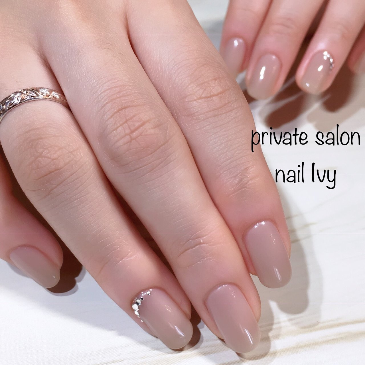 うだがわえりさんのオフィス 冬ネイル ヌーディのネイル 2019